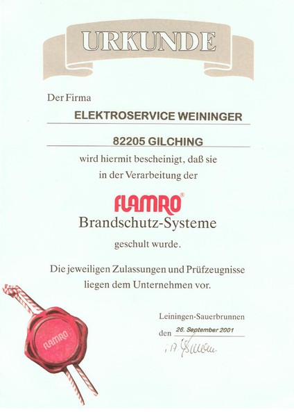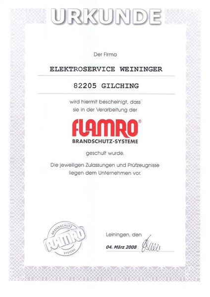 Umfassende Informationen über Zulassungen und Prüfzeugnisse erhalten Sie auf der Hompage des Hersteller www.flamro.de