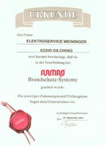Unser Betrieb ist zertifiziert für den gesetzlich vorgeschriebenen Brandschutz im gewerblichen Bereich.
